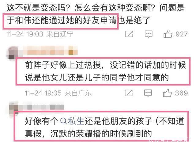 疑似冒充熟人,对于和伟的骚扰已持续一段时间 有网友好奇:“为何于和伟会通过她的好友申请?”这一问题随着事件曝光也有了答案。 有网友回复称,据悉当初该私生饭申请添加好友时,谎称自己是“于和伟女儿的同学”,还有说法称她自称是“朋友的孩子”。不论哪种说法,都表明这场骚扰已经持续了相当长的时间。